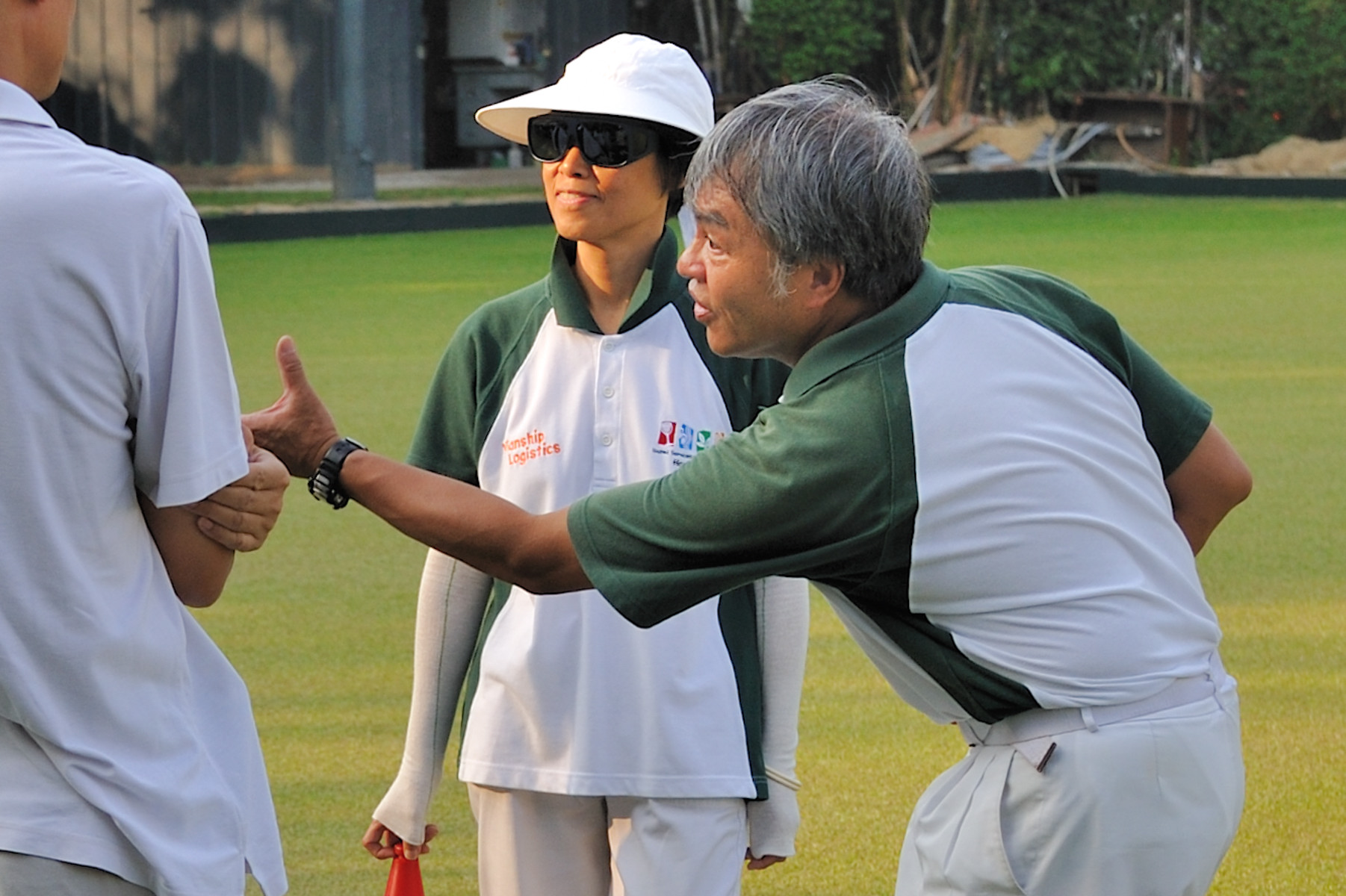 Our coach Mr CS Suenand his assistantYvonne (left) and Annie (right)